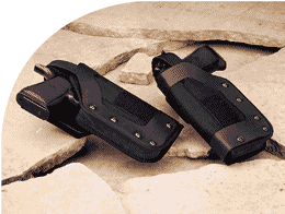 Black leather, suede-lined holsters are